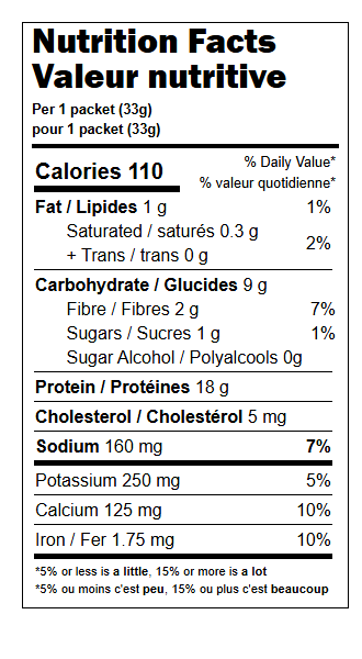 Ingrédients: Flocons d’avoine sans gluten,Farine de soja, Isolat de protéine de soja, Concentré de protéine de lait, Isolat de protéine de lactosérum, Sel de mer, Arôme naturel, Cannelle, Gomme xanthane, Bicarbonate de sodium, Extrait de feuilles de stévia, Dioxyde de silicium.